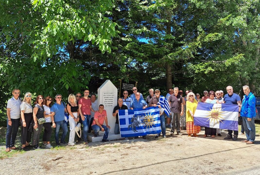 Την πρώτη φορά που βρεθήκαμε εδώ ήταν η 17η Ιουνίου 2018 η ημέρα που υπογράφηκε η Συμφωνία των Πρεσπών. Σε αυτό το σημείο αλλά και στην γύρω περιοχή νιώσαμε στο πετσί μας τη βία και τον τραμπουκισμό ενός κράτους που είχε πάρει απόφαση να ξεπουλήσει τα ιερά και τα όσιά μας. Από τότε, κάθε χρόνο την ίδια μέρα, ερχόμαστε σε αυτό το χωριό. Έχει σημασία όχι μόνο να μην ξεχνούμε την προδοσία που επιτελέστηκε από το καθεστώς ΣΥΡΙΖΑ-ΑΝΕΛ και την οποία συνεχίζει να σέβεται η ΝΔ, αλλά και να κάνουμε πράξη το σύνθημα «Αντίσταση και Αγώνας κατά της Συμφωνίας των Πρεσπών».