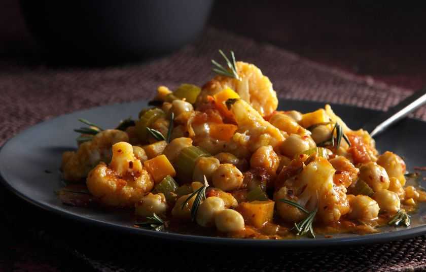 Κοκκινιστή ρεβιθάδα με κουνουπίδι και σέλερι