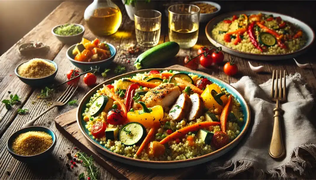 Το κους κους είναι ένα εξαιρετικά ευέλικτο και γευστικό συστατικό που μπορεί να ενσωματωθεί σε πολλές συνταγές. Είναι δημοφιλές στη μεσογειακή και βορειοαφρικανική κουζίνα και μπορεί να συνοδεύσει μια ποικιλία από λαχανικά, κρέατα και μπαχαρικά. Σ’ αυτή τη συνταγή, το κους κους συνδυάζεται με ζουμερά κομμάτια κοτόπουλου και πολύχρωμα λαχανικά για ένα υγιεινό και χορταστικό γεύμα. Είναι μια εύκολη και γρήγορη λύση για ένα γεύμα γεμάτο γεύσεις και θρεπτικά συστατικά που θα ικανοποιήσει όλη την οικογένεια.