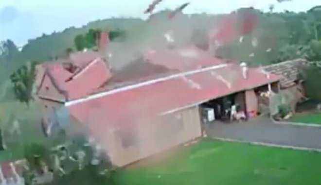 Το περιστατικό σημειώθηκε πριν λίγες ημέρες στο Ρίο Γκράντε Ντο Σουλ της Βραζιλίας και οι ισχυρές ρίπες αέρα μέσα σε λίγα δευτερόλεπτα ξήλωσαν την οροφή του σπιτιού προκαλώντας μεγάλη καταστροφή.