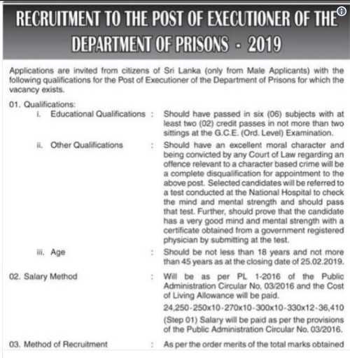 Στη Σρι Λάνκα δεν μπορούν να βρουν πλέον επαγγελματίες εκτελεστές. Η θέση παραμένει κενή εδώ και πέντε χρόνια, από τότε που παραιτήθηκε ο τελευταίος δήμιος.