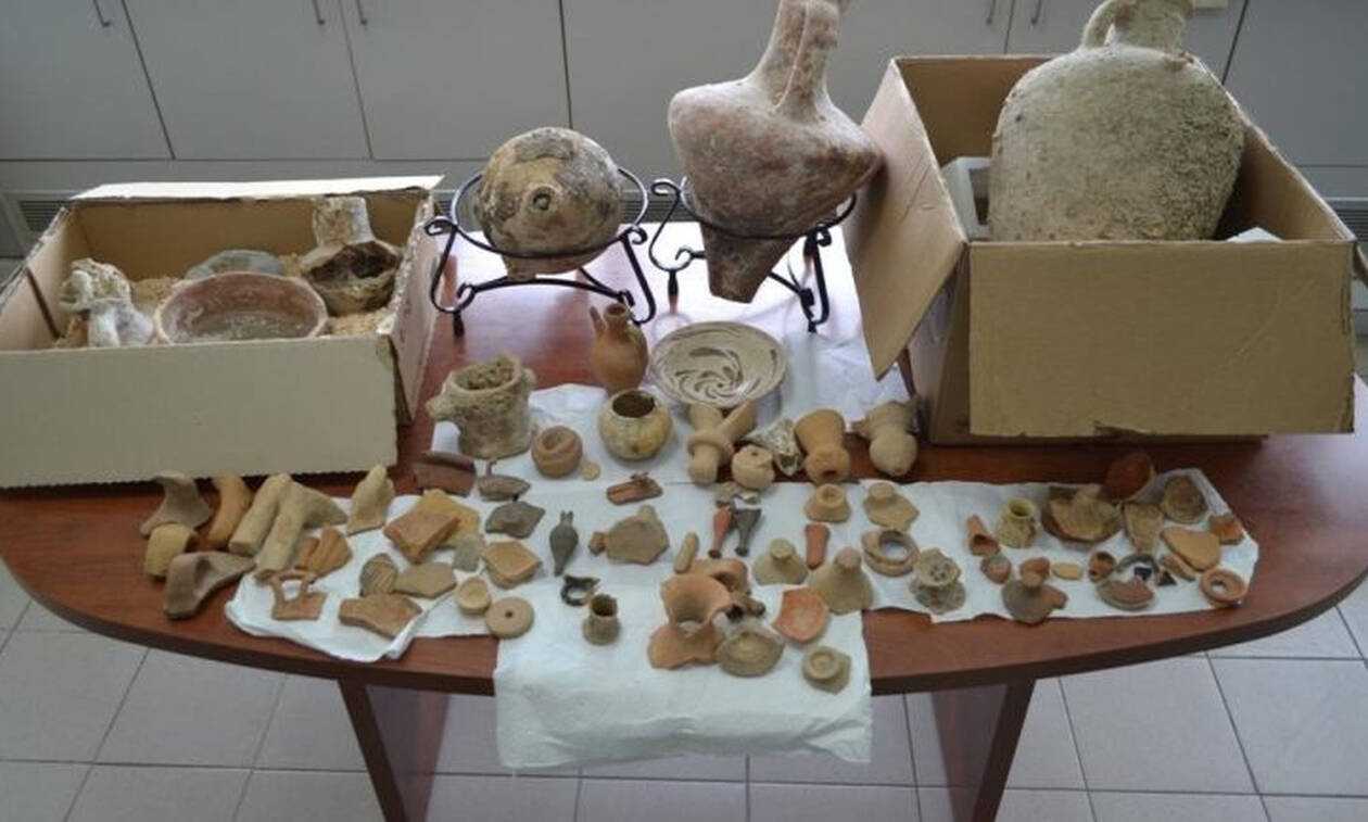 - τμήματα διαφόρων αντικειμένων (πήλινα αγγεία, πήλινα μυροδοχεία, πήλινοι αμφορείς, βάσεις, χείλη, σώματα, λίθινο αντικείμενο) διαφόρων τύπων και μεγεθών, τα οποία εμπίπτουν στην Νομοθεσία περί αρχαιοτήτων