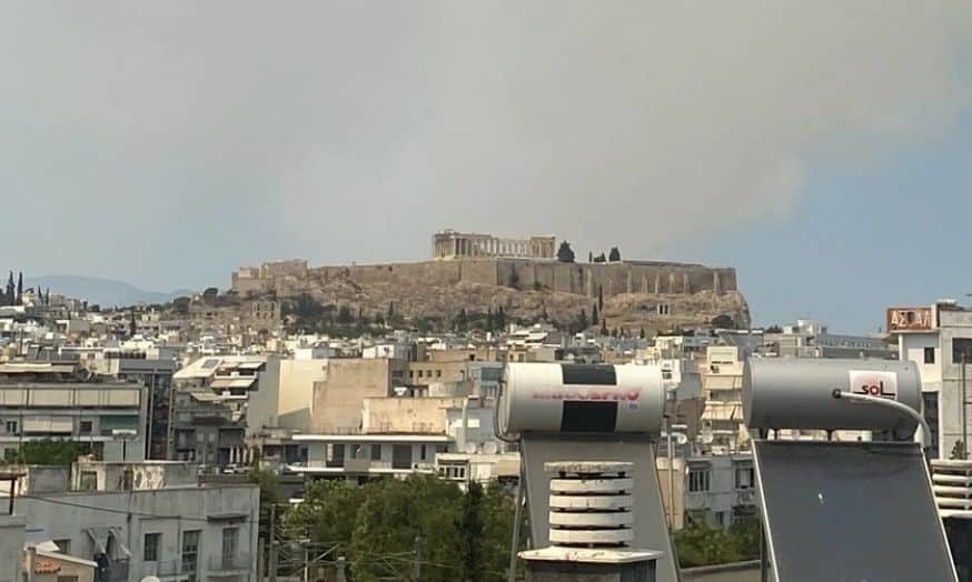Όπως φαίνεται και στις φωτογραφίες ο καπνός είναι ορατός στην Ακρόπολη, ενώ είναι αισθητή η μυρωδιά του καμένου.