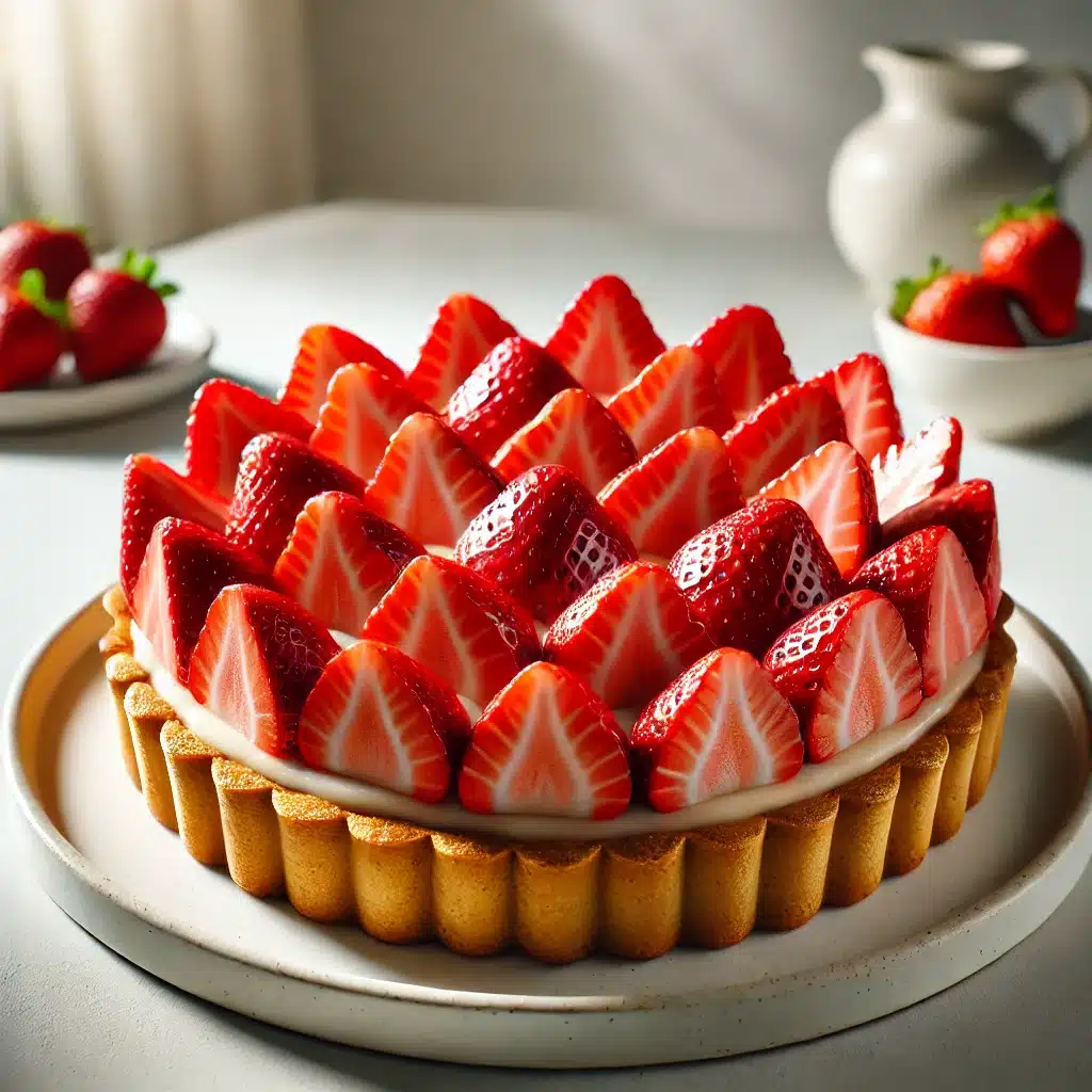Η τάρτα φράουλα είναι ένα από τα πιο απολαυστικά και δροσερά γλυκά που μπορείτε να φτιάξετε, ιδανικό για να εντυπωσιάσετε τους καλεσμένους σας ή για να απολαύσετε με την οικογένειά σας. Με μια τραγανή βάση μπισκότου, μια απαλή και κρεμώδη γέμιση τυριού και φρέσκες φράουλες στην κορυφή, αυτή η τάρτα συνδυάζει την τέλεια ισορροπία υφής και γεύσης. Το αποτέλεσμα είναι ένα ελαφρύ, γευστικό και όμορφο επιδόρπιο που αναδεικνύει τη γλυκύτητα των φρέσκων φρούτων.