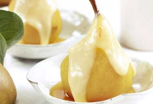 Αχλάδια με κρέμα λευκής σοκολάτας