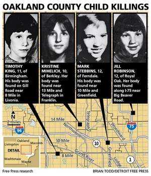 Το βράδυ της 22ας Μαρτίου 1977, δύο έφηβοι εντόπισαν το σώμα του εντεκάχρονου Timothy King σε ένα χαντάκι της Gill Road. Ο Timothy είχε εξαφανιστεί έξι μέρες νωρίτερα, αφού δανείστηκε 30 σεντς από την αδερφή του, για να πεταχτεί μέχρι ένα κοντινό μαγαζί και να αγοράσει γλυκά. Η σανίδα του σκέιτμπορντ, την οποία είχε μαζί του τη μέρα που εξαφανίστηκε, είχε τοποθετηθεί δίπλα στο ακόμη ζεστό σώμα του. Τα ρούχα του ήταν πλυμένα και σιδερωμένα. Σύμφωνα με το πόρισμα του ιατροδικαστή, το εντεκάχρονο αγόρι είχε πεθάνει από ασφυξία, αφού πρώτα κακοποιήθηκε σεξουαλικά, ενώ σημάδια στους αστραγάλους και τους καρπούς του δείχνουν ότι είχε ακινητοποιηθεί με δεσμά. Η νεκροτομή, επίσης, έδειξε ότι πριν πεθάνει ο Timothy είχε φάει το αγαπημένο του φαγητό, τηγανητό κοτόπουλο από το KFC. Ο Timothy King ήταν το τέταρτο και τελευταίο θύμα ενός σίριαλ κίλερ, ο οποίος έδρασε για δεκατρείς μήνες στην περιοχή του Oakland County στο Michigan, προτού ξαφνικά σταματήσει τη δράση του.