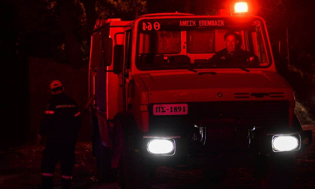 Στο χώρο παραμένουν οχήματα της πυροσβεστικής.