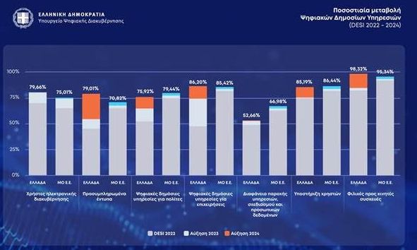 Σημαντική πρόοδο στην ψηφιοποίηση των δημόσιων υπηρεσιών, σημείωσε η Ελλάδα το 2023, ενώ συγχρόνως κατέγραψε και την καλύτερη επίδοση της τετραετίας αγγίζοντας του 16%.