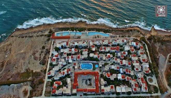 Πετάμε πάνω από τον οικισμό “Διόνυσος”, πρώην ΣΟΕ, στην περιοχή Ανάλουκας, κοντά στη Σητεία της Κρήτης. Στα τέλη της δεκαετίας του ’90 ο κ. Τροχανάς παρουσίασε το φιλόδοξο σχέδιο της δημιουργίας αυτού του οικισμού.