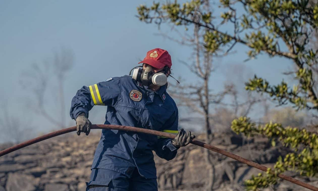 Για την κατάσβεσή της πιχειρούν 34 πυροσβέστες με 1 ομάδα πεζοπόρου και 12 οχήματα ενώ επιχείρησαν πέντε αεροσκάφη και ένα ελικόπτερο.