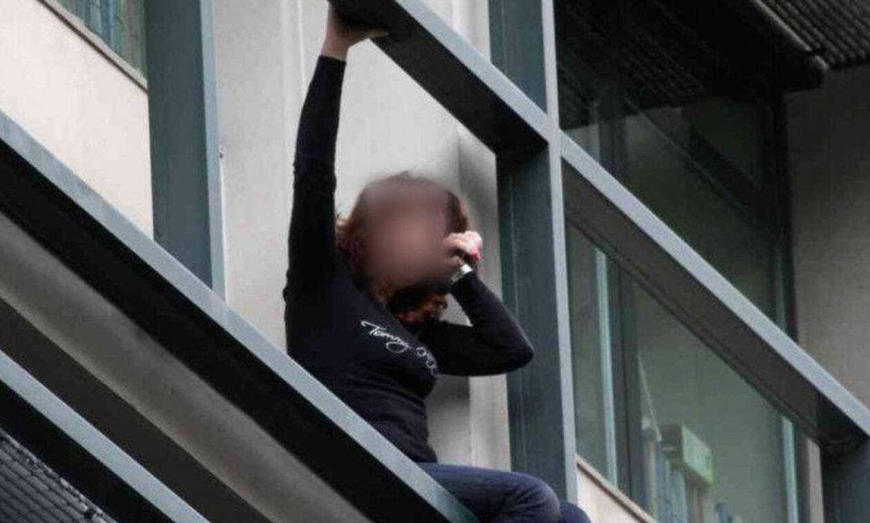 Την τελευταία στιγμή και ενώ είχε ανέβει στα παγκάκια που υπάρχουν δίπλα από το εσωτερικό μπαλκόνι του πρώτου ορόφου, ο αστυνομικός που βρισκόταν εντός του κτηρίου αντιλήφθηκε την ενέργεια της και την πρόλαβε την τελευταία –κυριολεκτικά- στιγμή.