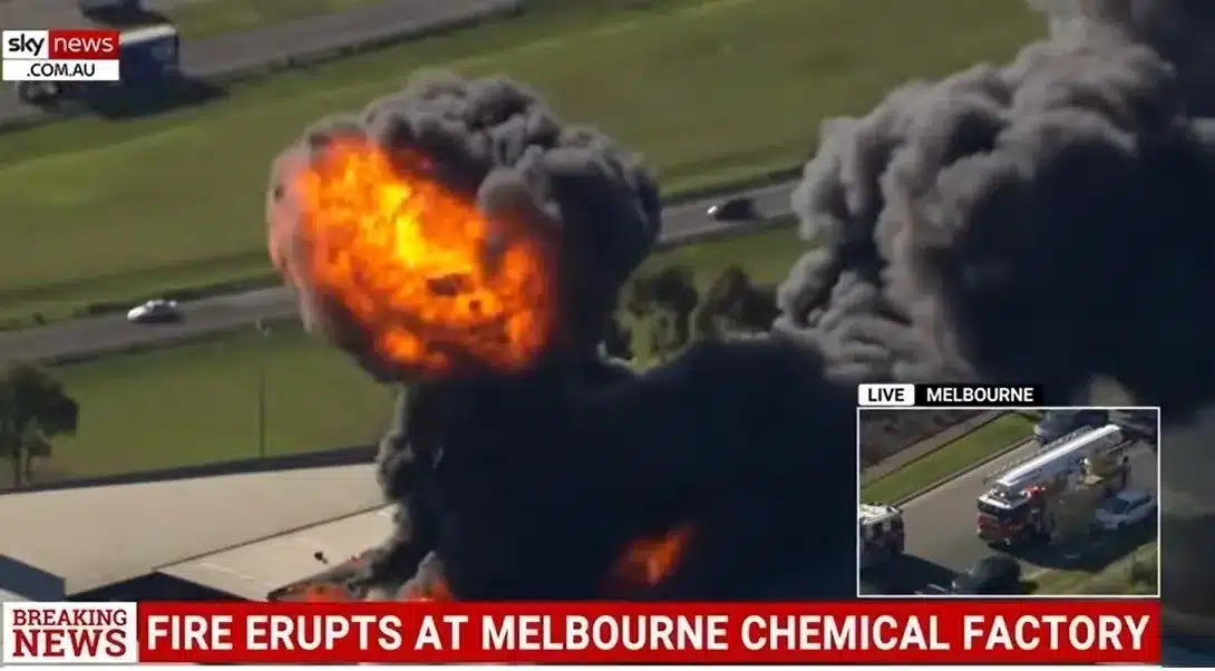 Μελβούρνη: Την Τετάρτη το πρωί, μια από τις μεγαλύτερες πυρκαγιές των τελευταίων δεκαετιών ξέσπασε στα δυτικά, σε εργοστάσιο επεξεργασίας χημικών. Η πυρκαγιά συνοδεύτηκε από ισχυρή έκρηξη, που προκλήθηκε από ανάφλεξη αποθηκευμένων χημικών, με αποτέλεσμα να εκτιναχθούν συντρίμμια σε μεγάλη απόσταση και να ξεσπάσουν μικρότερης έντασης εκρήξεις.