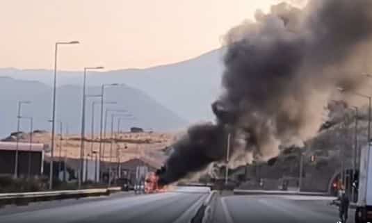 Η κυκλοφορία των οχημάτων διακόπηκε και στα δύο ρεύματα.