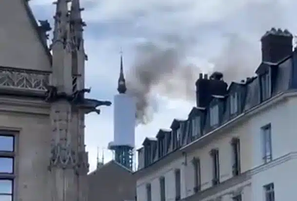 Début d’incendie en cours sur la flèche de la cathédrale de @Rouen. Origine inconnue à ce stade. Tous les moyens publics sont mobilisés. Merci de faciliter leur intervention. pic.twitter.com/Lnu1vMrw5p