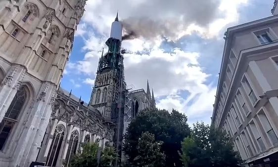 Στις φλόγες τυλίχθηκε ο γοτθικός καθεδρικός ναός στην πόλη Ρουέν στη Νορμανδία, φέρνοντας στο νου τις μνήμες από τη μεγάλη φωτιά στον ναό της Παναγίας των Παρισίων το 2019.