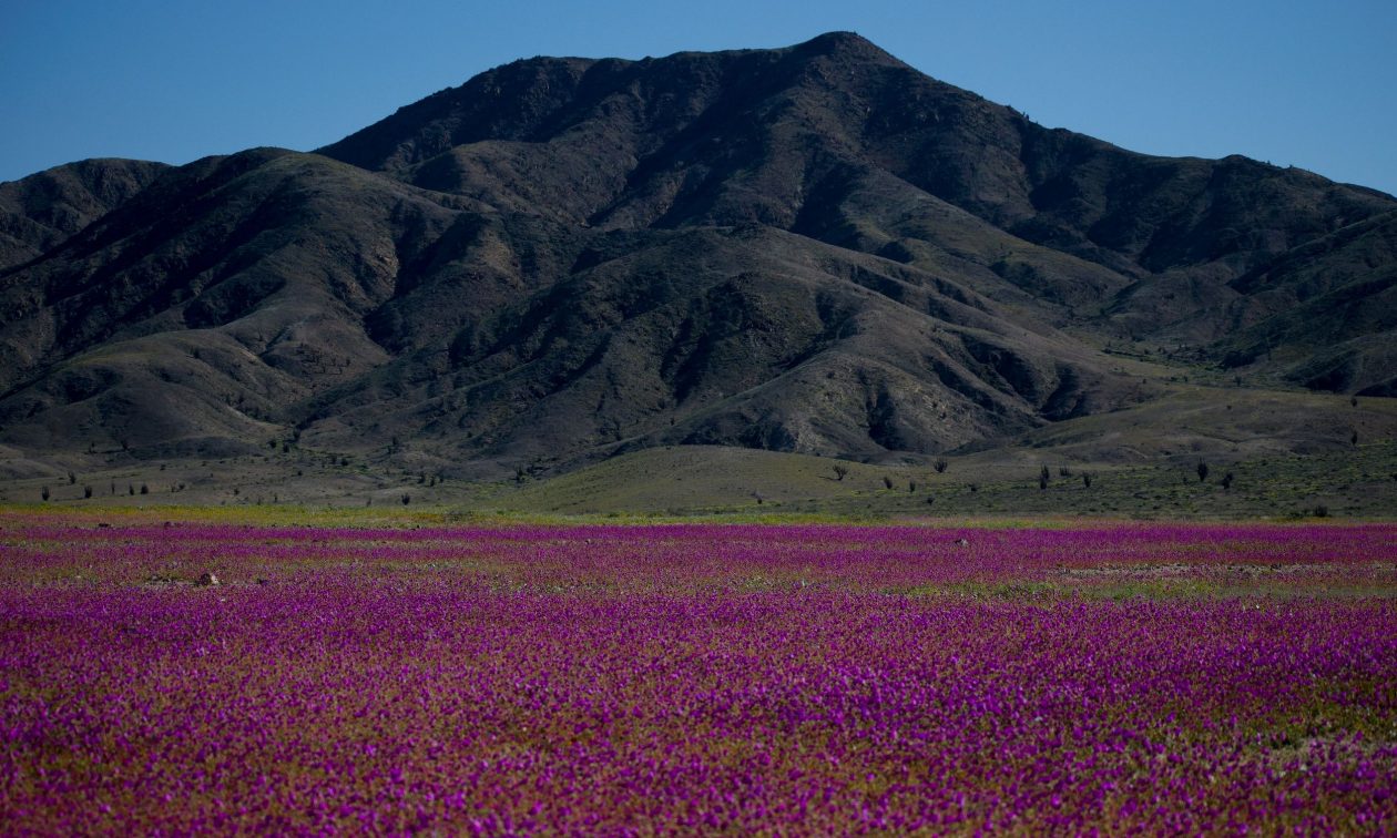 Στη Χιλή, η έρημος Ατακάμα είναι πλέον στολισμένη με μωβ λουλούδια χάρη στις ασυνήθιστες βροχοπτώσεις.
