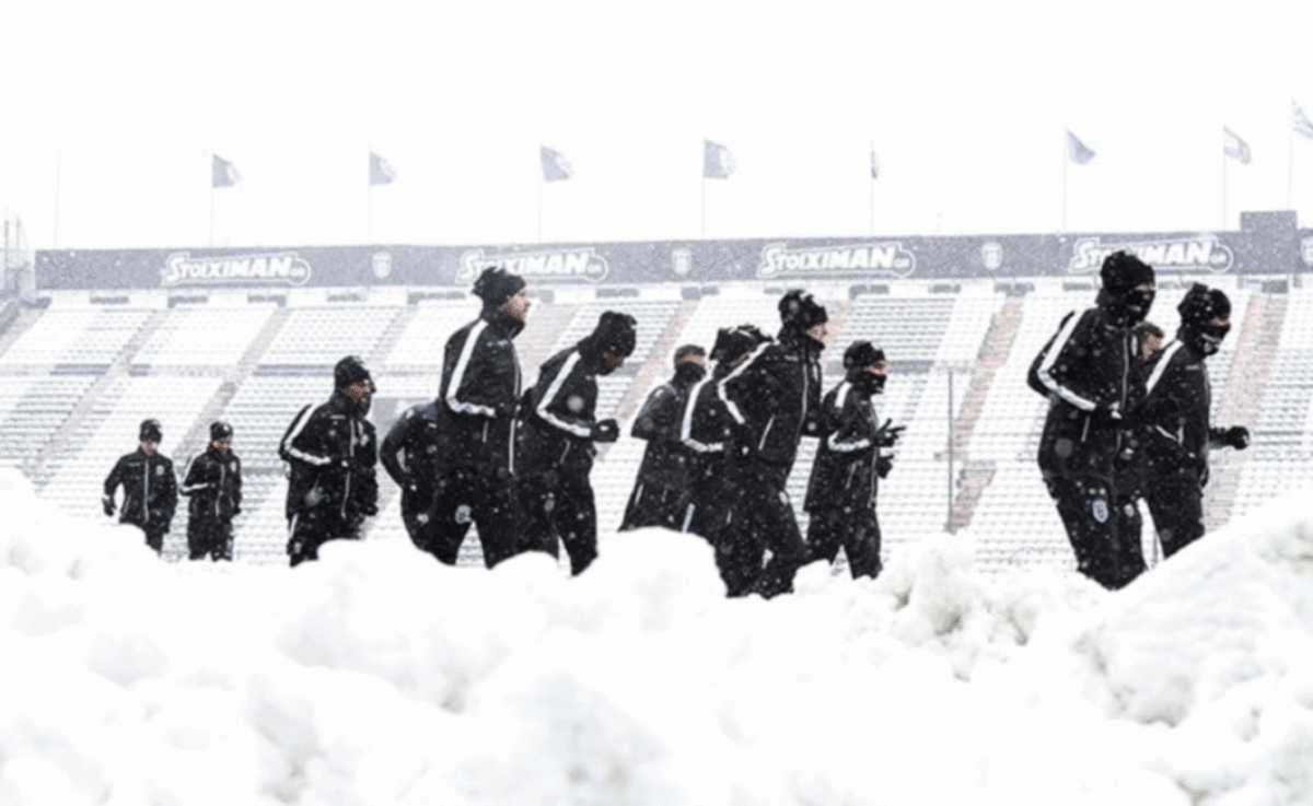 Οι δύσκολες καιρικές συνθήκες έχουν θέσει εν αμφιβόλω το ντέρμπι του ΠΑΟΚ με τον Άρη στην Τούμπα, με τον Δικέφαλο του Βορρά να πραγματοποιεί την τελευταία προπόνηση στα χιόνια.