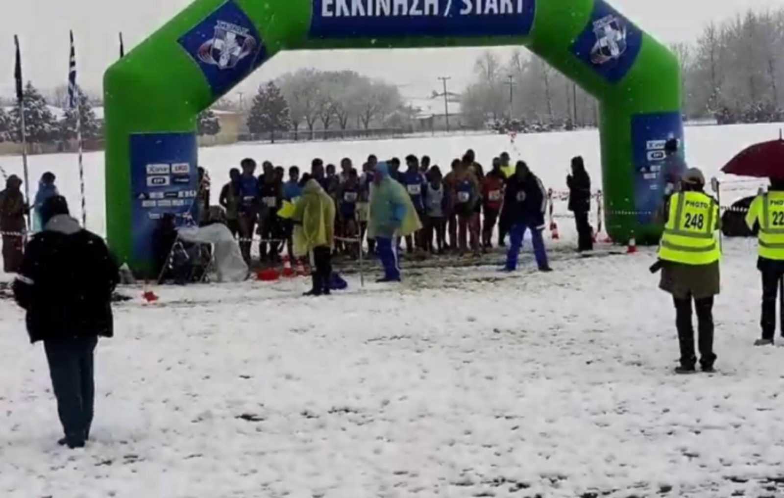 Η κακοκαιρία που επικρατεί στα Τρίκαλα δημιούργησε ένα χιονισμένο τοπίο για το Πανελλήνιο πρωτάθλημα σε ανώμαλο έδαφος. Η περιοχή ήταν γεμάτη χιόνι, αλλά αυτό δεν σταμάτησε τους διοργανωτές από το να δώσουν εκκίνηση στον αγώνα δρόμου και τους αθλητές από το να λάβουν μέρος, παρά το τσουχτερό κρύο.