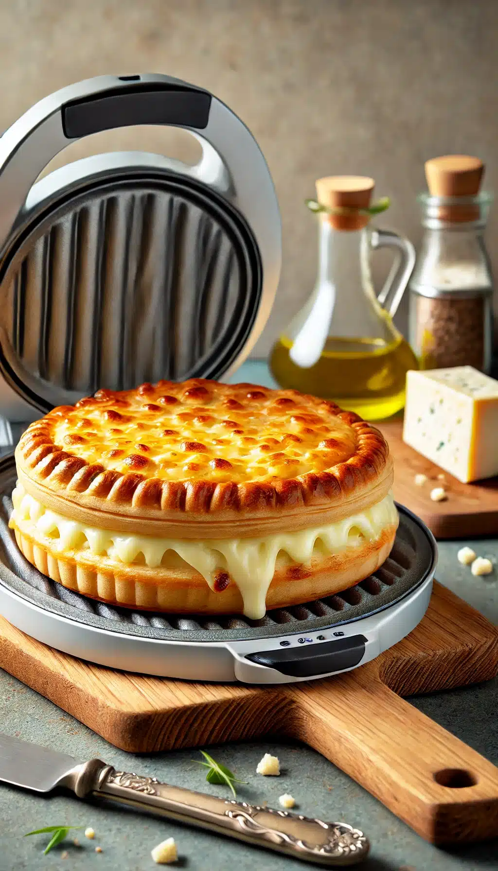 6. Ανοίξτε την τοστιέρα και αφήστε την τυρόπιτα να κρυώσει λίγο πριν την κόψετε και σερβίρετε.