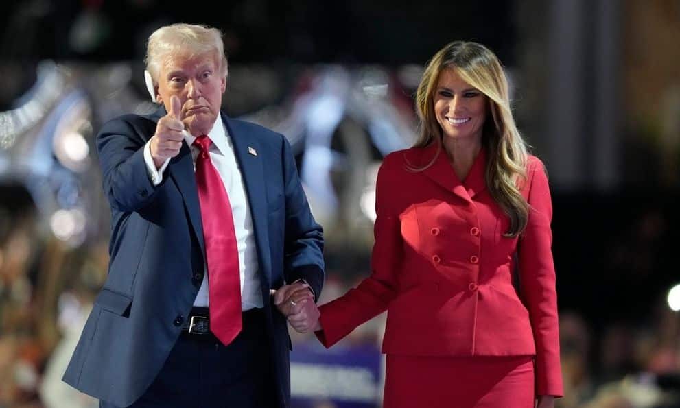 Σε μία από τις πιο συμβολικές στιγμές της βραδιάς, η πρώην πρώτη κυρία Μελάνια Τραμπ εμφανίστηκε στην κατάμεστη αίθουσε με ένα κόκκινο εντυπωσιακό σύνολο, χαιρέτισε τα πλήθη και αντάλλαξε ένα φιλί με τον σύζυγό της. Εκτός από τον μεγάλο σταρ της βραδιάς, τον πρώην πρόεδρο των ΗΠΑ, τον λόγο κατά την τέταρτη και τελευταία ημέρα του Συνεδρίου πήραν επίσης ο πρώην παρουσιαστής του Fox News, Tάκερ Κάρλσον, αλλά και ο επαγγελματίας παλαιστής Χαλκ Χόγκαν για να αποδώσουν στα εύσημα στον Τραμπ.
