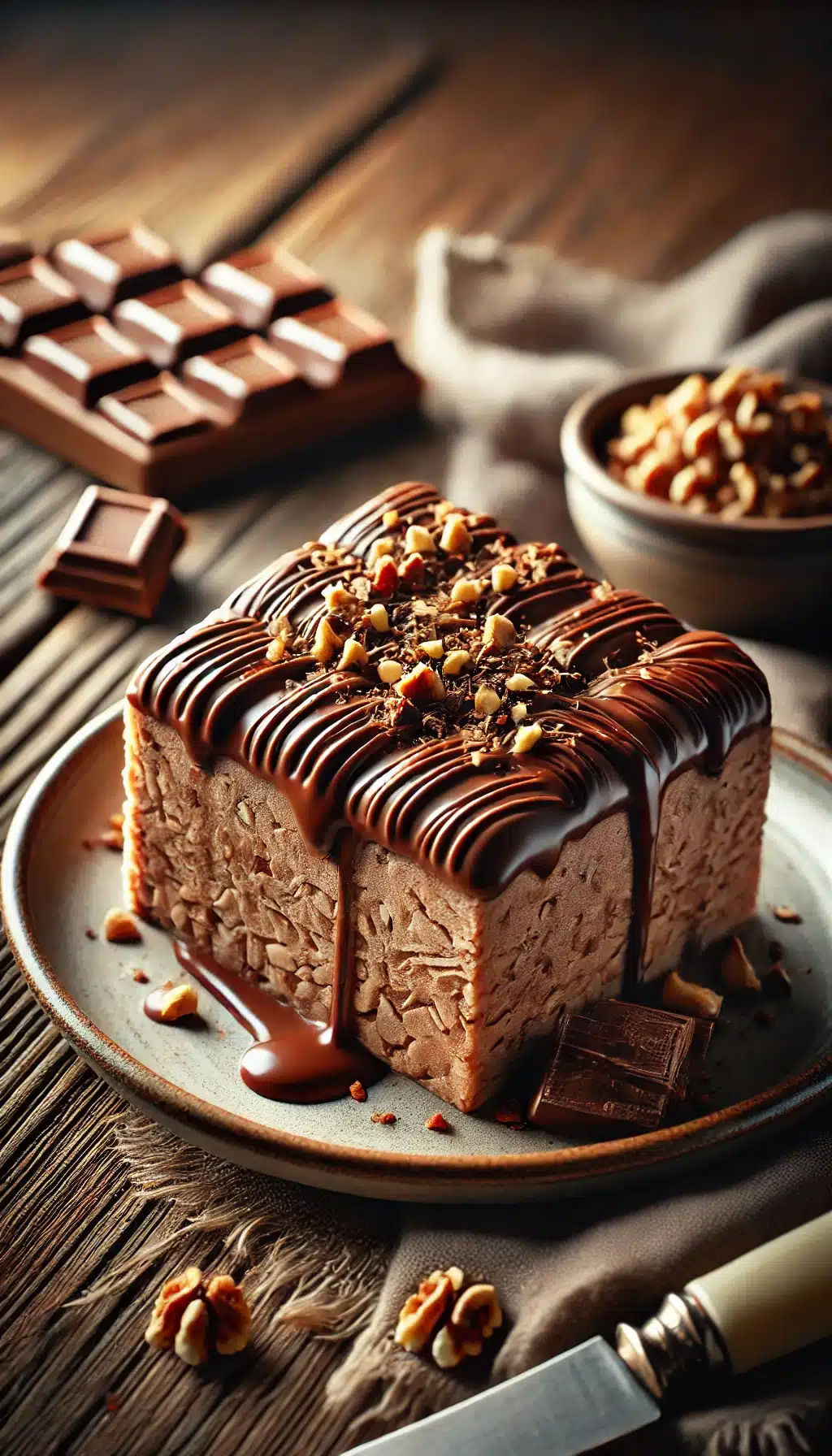 - Ξεφορμάρουμε και σερβίρουμε με επιπλέον λιωμένη σοκολάτα και καρύδια αν θέλουμε.