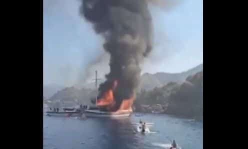 Αγωνία για τους 110 επιβάτες τουριστικού σκάφους στον Μαρμαρά το οποίο βυθίστηκε αφού πρώτα τυλίχθηκε στις φλόγες