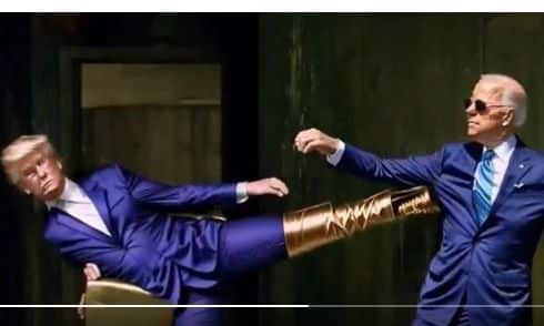Στο βίντεο τηχνητής νοημοσύνης απεικονίζεται ο Ντόναλαντ Τραμπ να δέχεται σφαίρες από τον Τζο Μπάιντεν και να τις αποκρούει όπως ο NEO στην ταινία MATRIX. Στη συνέχεια το βίντεο δείχνει να παλεύουν και τελικά ο Ντόναλντ Τραμπ να εξολοθρεύει τον Τζο Μπάιντεν με χαρακτηριστική άνεση.