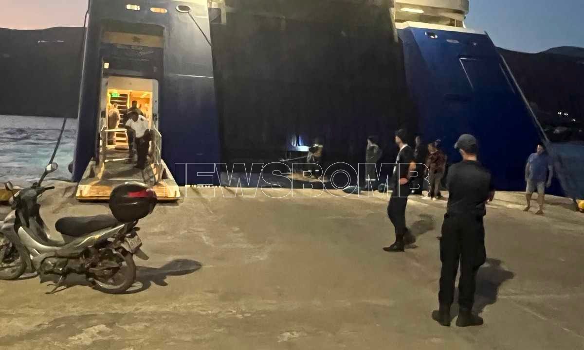 Το πλοίο υπέστη βλάβη στον καταπέλτη οχημάτων κατά τη διάρκεια του κατάπλου στο λιμάνι της Αιγιάλης της Αμοργού, όπως φαίνεται στο βίντεο και τις φωτογραφίες του Newsbomb.gr.