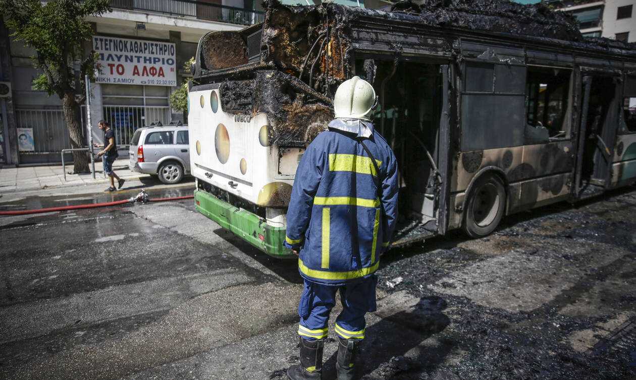 Στο λεωφορείο δεν υπήρχαν εκείνη την ώρα επιβάτες ενώ ο οδηγός του πρόλαβε και βγήκε από το όχημα, χωρίς να τραυματιστεί.