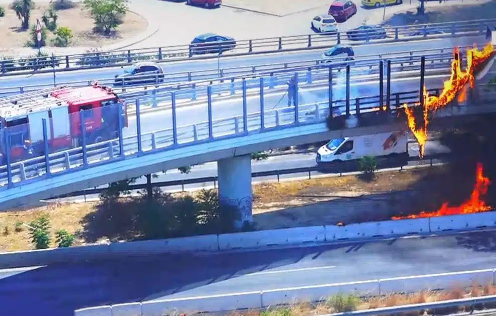 Η φωτιά έχει πάρει τέτοιες διαστάσεις, με αποτέλεσμα να καίγονται μέχρι και τα γυάλινα προστατευτικά στον δρόμο, τα οποία πλέον έχουν λιώσει και «στάζουν» προς τα κάτω.